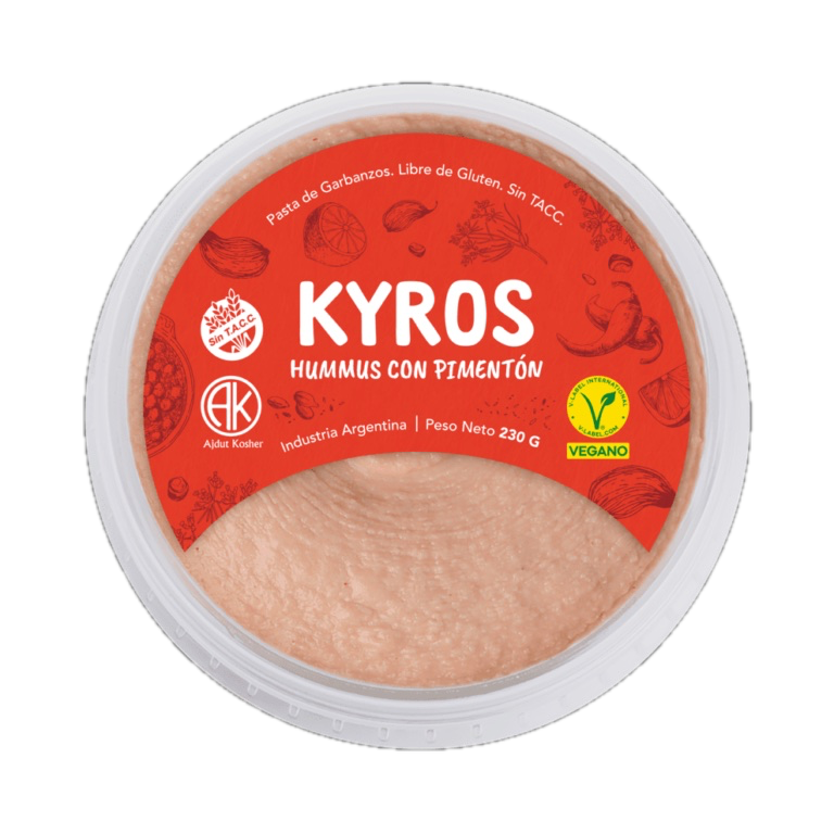 Agua; Garbanzos; Aceite de Girasol; Tahini (Pasta a base de Semillas de Sésamo Blanco Tostado); Sal; Pimentón; Ajo; Especia; Acidulante: Ácido Cítrico; Conservante: Sorbato de Potasio. PUEDE CONTENER HUEVO.