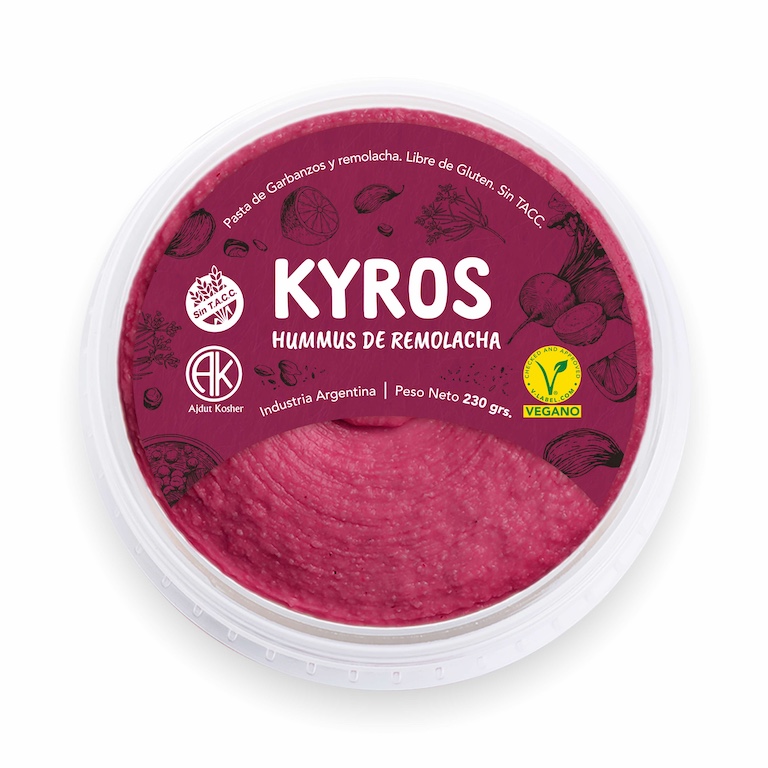Agua; Garbanzos; Aceite de Girasol; Remolacha; Tahini (Pasta a base de Semillas de Sésamo Blanco Tostado); Azúcar; Sal; Ajo; Especia; Acidulante: Ácido Cítrico; Conservante: Sorbato de Potasio. Colorante permimito.PUEDE CONTENER HUEVO.